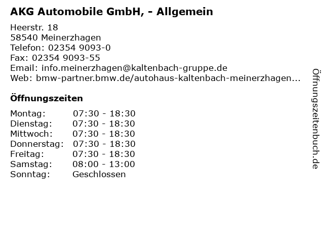 3 AKG Automobile GmbH - Verkauf (Gebrauchte Automobile) (Entfernung: 0,02 km) Heerstr. 18, 58540 Meinerzhagen 5 OGS Hackenberg Schulen, allgemein bildende Schulen (Entfernung: 7,58 km) Löhstr. 20, 51702 Bergneustadt 6 Kreiskrankenhaus Gummersbach - Besuchszeiten allgemein (Entfernung: 11,58 km) Wilhelm-Breckow-Allee 20, 51643 Gummersbach |