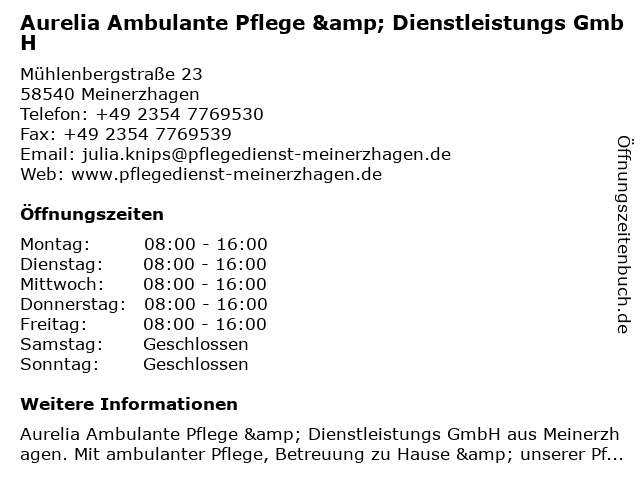 1 APD Ambulante Pflegedienste Meinerzhagen GmbH (Entfernung: 1,21 km) Genkeler Str. 24f, 58540 Meinerzhagen 2 4 Pflege- und Betreuungszentrum Haus Westfalenhöhe GmbH & Co. KG (Entfernung: 9,93 km) Kölner Str. 7, 57489 Drolshagen 5 evergreen Pflege- und Betreuungszentrum Bergneustadt (Entfernung: 10,12 km) Bahnstr. 7, 51702 Bergneustadt 6 Gesundheitszentrum Berstig RPP Gesellschaft für Rehabilitation Prävention und Pflege mbH (Entfernung: 10,68 km) Hüttenberg 1, 51643 Gummersbach |