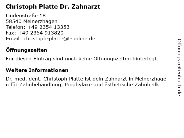 | Christoph Platte Dr. Zahnarzt anrufen | |