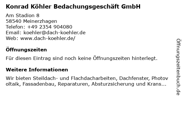 | Konrad Köhler Bedachungsgeschäft GmbH anrufen | |