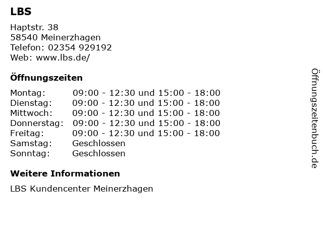 | Öffnungszeiten LBS in Meinerzhagen anzeigen | |