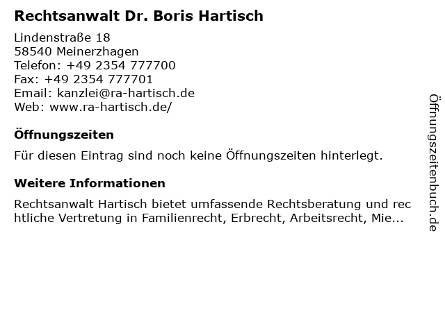 | Rechtsanwalt Dr. Boris Hartisch anrufen | |