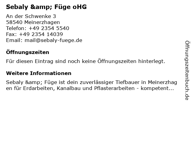 | Öffnungszeiten Sebaly & Füge oHG in Meinerzhagen anzeigen | |