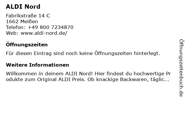 | Öffnungszeiten ALDI Nord in Meißen anzeigen | |