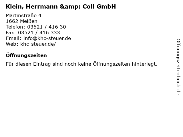 | Öffnungszeiten Klein, Herrmann & Coll GmbH in Meißen anzeigen | |