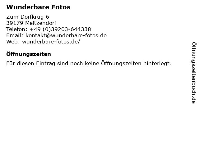 | Öffnungszeiten Wunderbare Fotos in Meitzendorf anzeigen | |