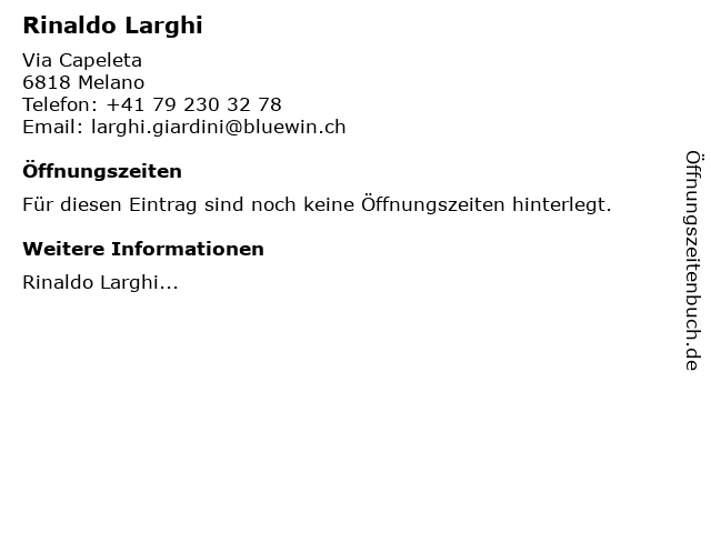 | Öffnungszeiten Rinaldo Larghi in Melano anzeigen | |