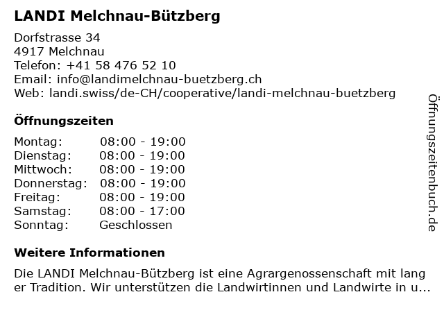 | Öffnungszeiten LANDI Melchnau-Bützberg in Melchnau anzeigen | |
