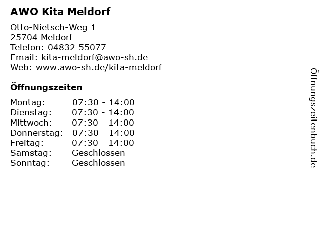 | Öffnungszeiten AWO Kita Meldorf in Meldorf anzeigen | |