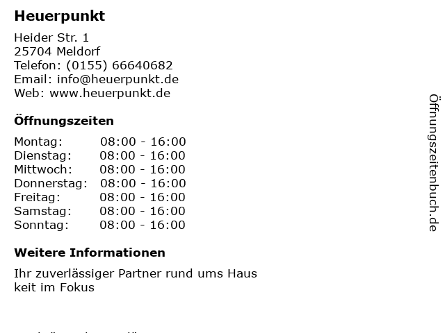 | Öffnungszeiten Heuerpunkt in Meldorf anzeigen | |