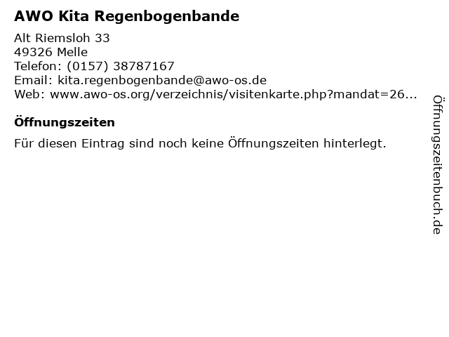 | Öffnungszeiten AWO Kita Regenbogenbande in Melle anzeigen | |
