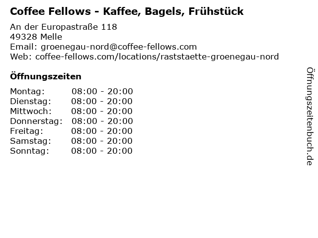 | Öffnungszeiten Coffee Fellows - Kaffee, Bagels, Frühstück in Melle anzeigen | |