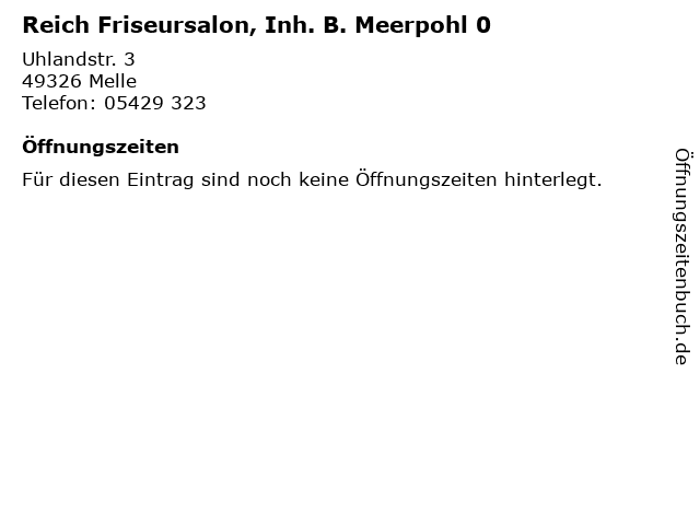 | Reich Friseursalon, Inh. B. Meerpohl 0 anrufen | |