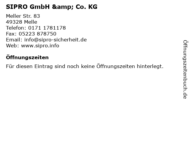 | Öffnungszeiten SIPRO GmbH & Co. KG in Melle anzeigen | |