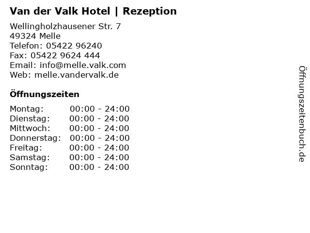 | Öffnungszeiten Van der Valk Hotel | Rezeption in Melle anzeigen | |