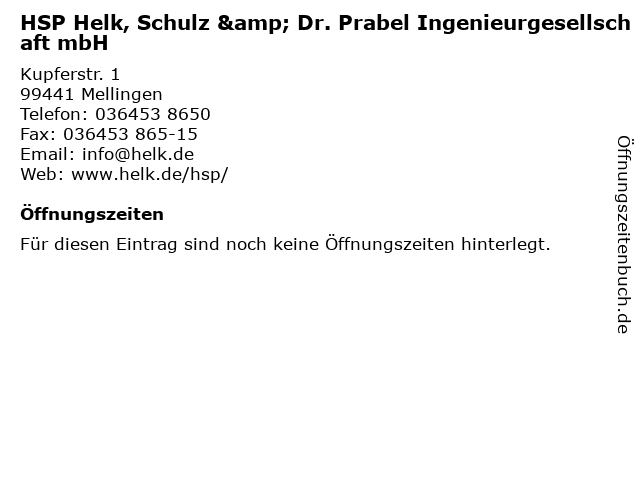| HSP Helk, Schulz & Dr. Prabel Ingenieurgesellschaft mbH anrufen | |
