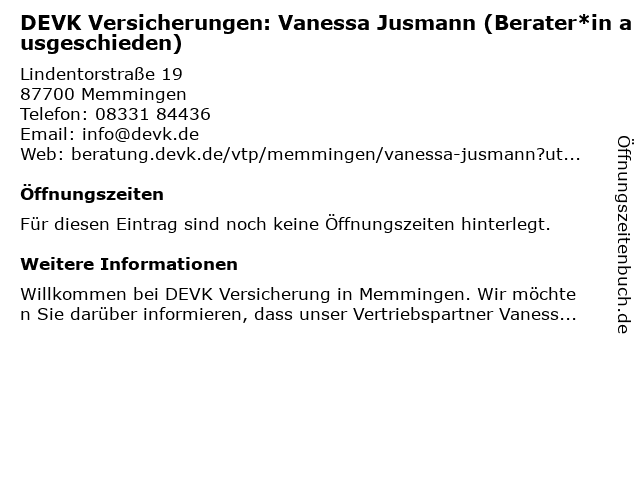 | DEVK Versicherungen: Vanessa Jusmann (Berater*in ausgeschieden) anrufen | |