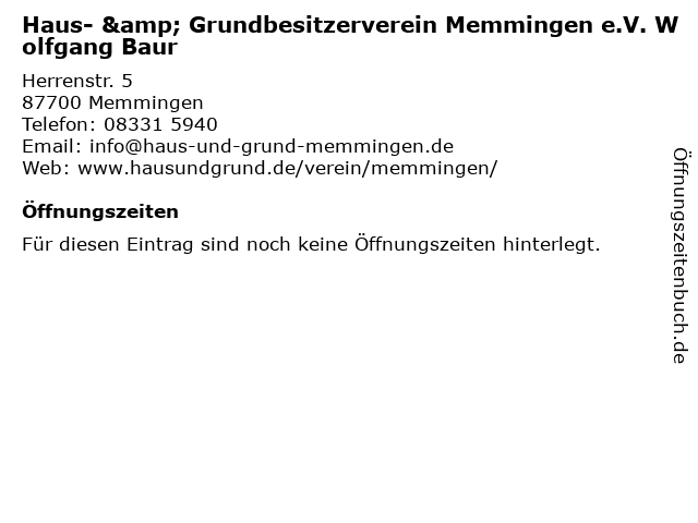 | Haus- & Grundbesitzerverein Memmingen e.V. Wolfgang Baur anrufen | |