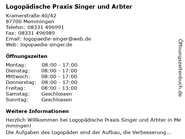 Branchen & Suchbegriffe zu Logopädische Praxis Singer und Arbter:arbter, logopädische, praxis, singer |