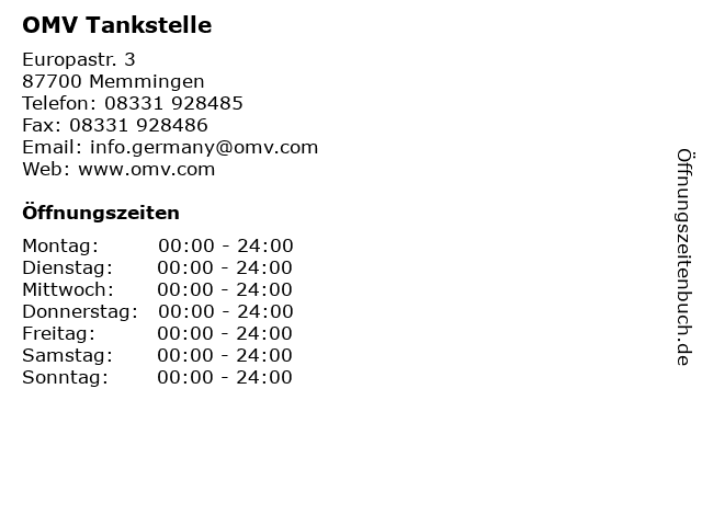 | Öffnungszeiten OMV Tankstelle in Memmingen anzeigen | |
