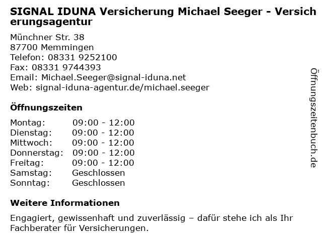 Branchen & Suchbegriffe zu SIGNAL IDUNA Versicherung Michael Seeger - Versicherungsagentur:iduna, michael, seeger, signal, versicherung, versicherungsagentur |