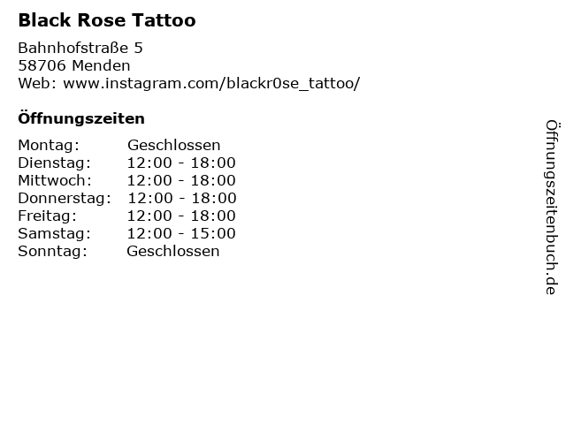 | Öffnungszeiten Black Rose Tattoo in Menden anzeigen | |