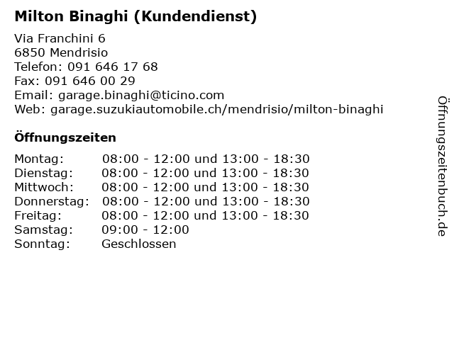 Branchen & Suchbegriffe zu Milton Binaghi (Kundendienst):automobile, binaghi, car dealer, cars, ersatzteile, garage, kundendienst, milton, reifencenter, service & werkstatt, zubehör |