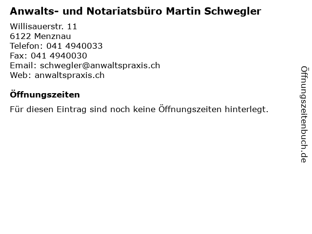 | Anwalts- und Notariatsbüro Martin Schwegler anrufen | |