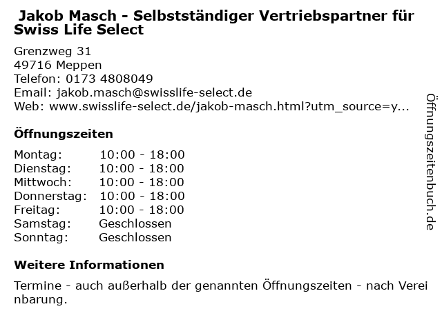 Branchen & Suchbegriffe zu Jakob Masch - Selbstständiger Vertriebspartner für Swiss Life Select:berufshaftpflichtversicherung, berufsunfähigkeitsversicherung, finanzplanung, gebäude- und hausratsversicherung, investmentservice, jakob, lebensversicherung, life, masch, mietrechtsschutzversicherung, pflegeversicherung, selbstständiger, select, swiss, versicherungsberater, vertriebspartner  |