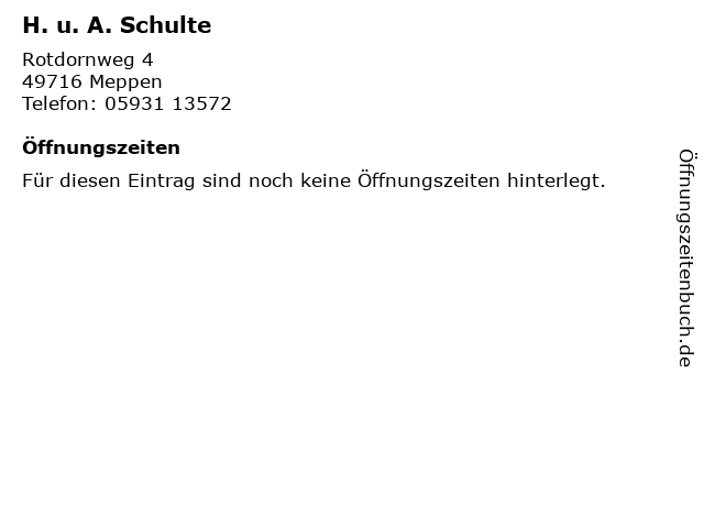 Öffnungszeiten H. u. A. Schulte in Meppen anzeigen | |
