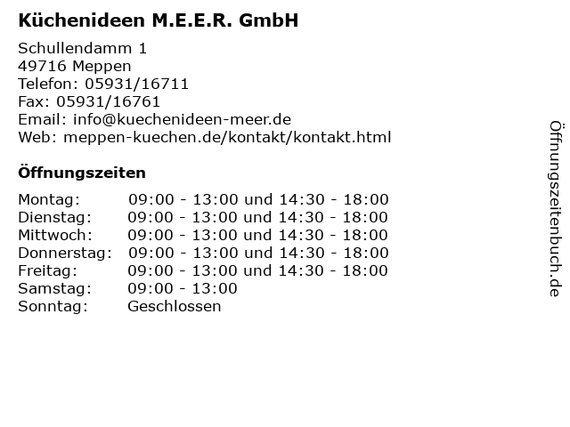 | Öffnungszeiten Küchenideen M.E.E.R. GmbH in Meppen anzeigen | |