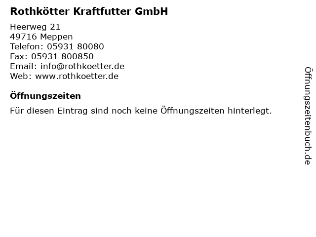 | Öffnungszeiten Rothkötter Kraftfutter GmbH in Meppen anzeigen | |