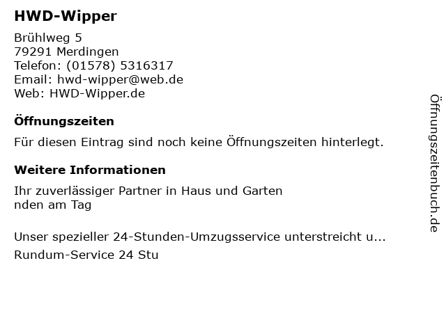 | Öffnungszeiten HWD-Wipper in Merdingen anzeigen | |