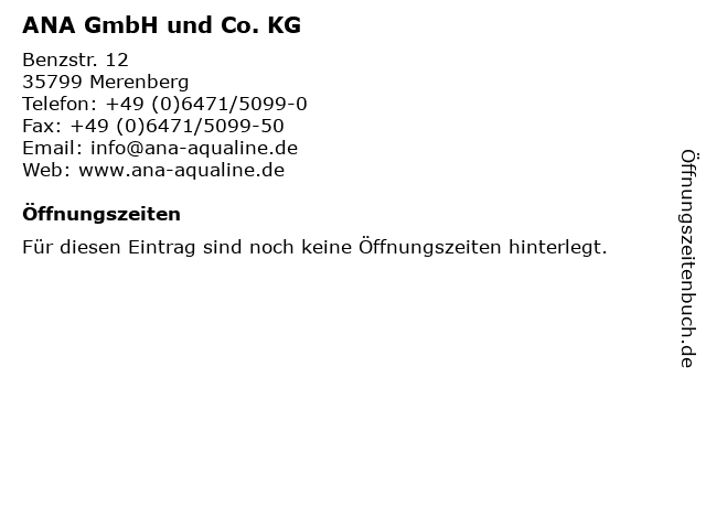 | Adresse ANA GmbH und Co. KG in Merenberg anzeigen |