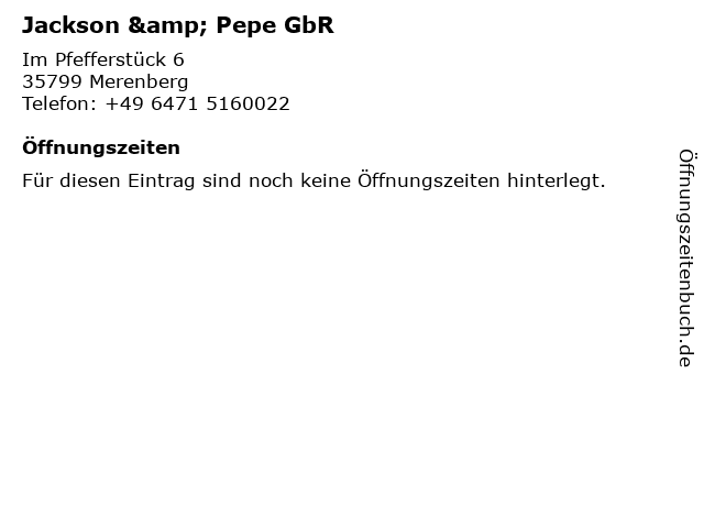 | Öffnungszeiten Jackson & Pepe GbR in Merenberg anzeigen | |