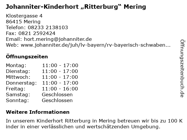 Branchen & Suchbegriffe zu Johanniter-Kinderhort „Ritterburg“ Mering:agentur für kinderbetreuung, gemeinnützige organisation, hilfsorganisation, johanniter, kinderhort, mering, sozialarbeit, verband, wohlfahrtseinrichtung, „ritterburg“ |