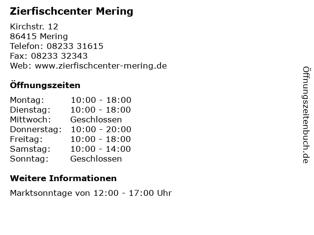 | Öffnungszeiten Zierfischcenter Mering in Mering anzeigen | |