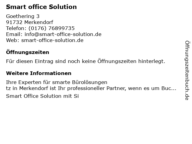 | Öffnungszeiten Smart office Solution in Merkendorf anzeigen | |