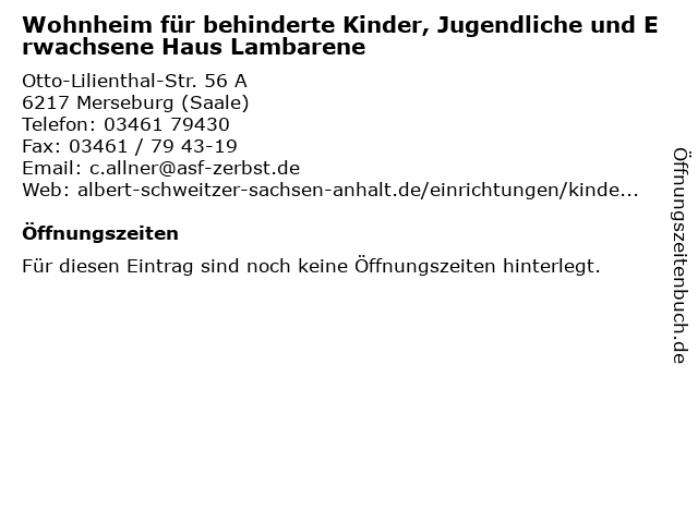 | Wohnheim für behinderte Kinder, Jugendliche und Erwachsene Haus Lambarene anrufen | |