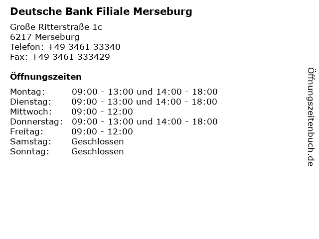 Branchen & Suchbegriffe zu Deutsche Bank Filiale Merseburg:bank, deutsche |