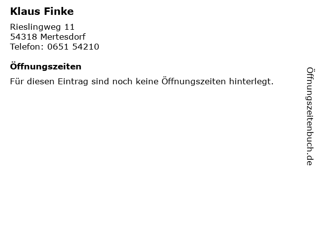 | Öffnungszeiten Klaus Finke in Mertesdorf anzeigen | |