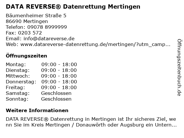 Branchen & Suchbegriffe zu DATA REVERSE® Datenrettung Mertingen:computertechnik, data, datenrettung, mertingen, reparaturservice für computer, reverse® |