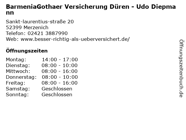 Branchen & Suchbegriffe zu BarmeniaGothaer Versicherung Düren - Udo Diepmann:barmeniagothaer, diepmann, udo, versicherung |
