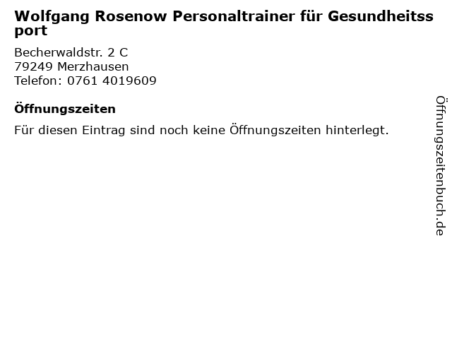 | Wolfgang Rosenow Personaltrainer für Gesundheitssport anrufen | |