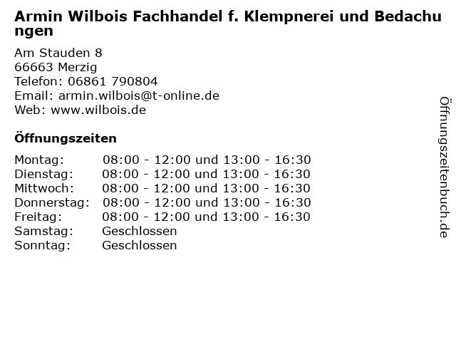 Branchen & Suchbegriffe zu Armin Wilbois Fachhandel f. Klempnerei und Bedachungen:armin, baustoffe, bedachungen, dachdeckereien, f., fachhandel, großhandel, installationsgeschäfte, klempnerei, klempnereien, wilbois |