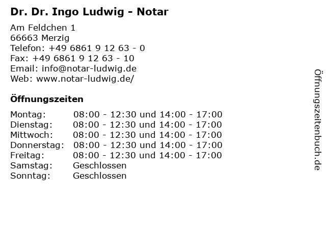 | Öffnungszeiten Dr. Dr. Ingo Ludwig - Notar in Merzig anzeigen | |