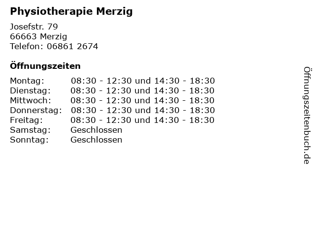 | Öffnungszeiten Physiotherapie Merzig in Merzig anzeigen | |