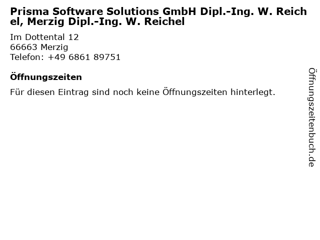 | Prisma Software Solutions GmbH Dipl.-Ing. W. Reichel, Merzig Dipl.-Ing. W. Reichel anrufen | |