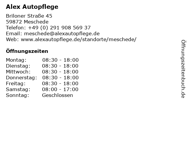 | Öffnungszeiten Alex Autopflege in Meschede anzeigen | |