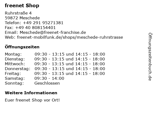 Öffnungszeiten freenet Shop in Meschede anzeigen | |